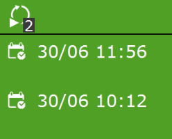 Im Bewässerungsprogramm zeigt der Kachelhauptteil andere Informationen an. Oben werden Informationen zum nächsten Bewässerungszyklus (Datum und Uhrzeit) angezeigt. Unten werden Informationen zum letzten Bewässerungszyklus (Volumen oder Uhrzeit) angezeigt: